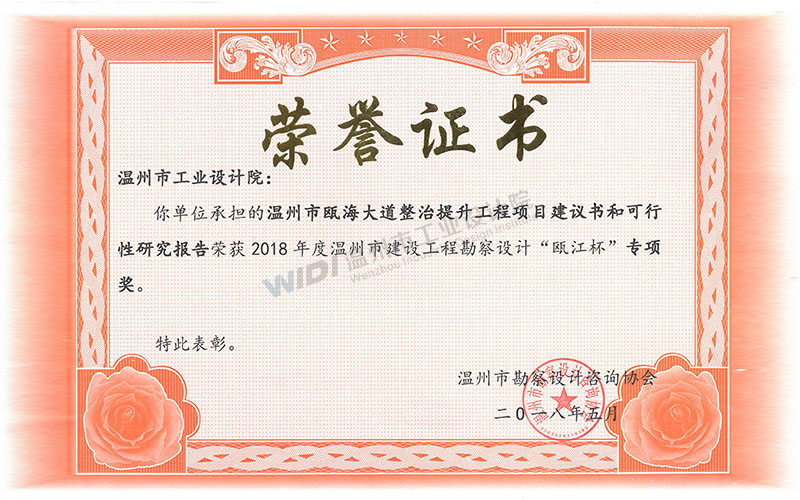 溫州市甌海大道整治提升工程項(xiàng)目建議書和可行性研究報(bào)告 甌江杯專項(xiàng)獎(jiǎng)