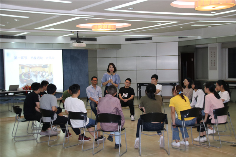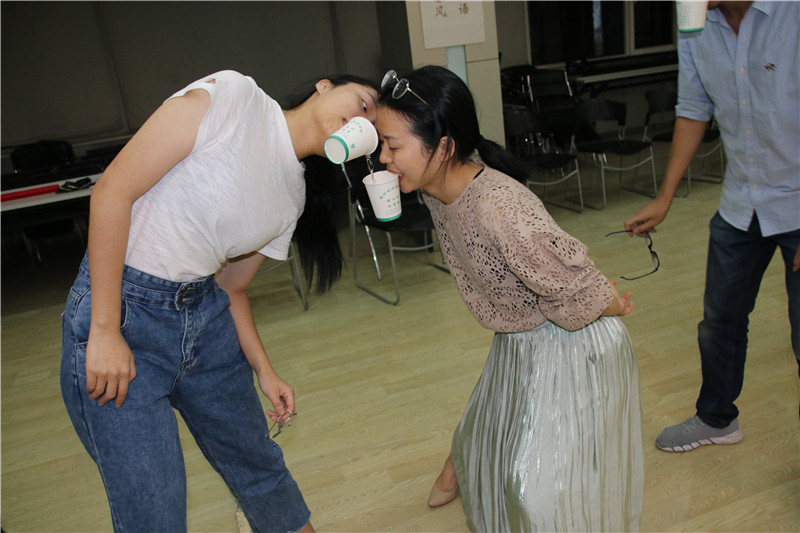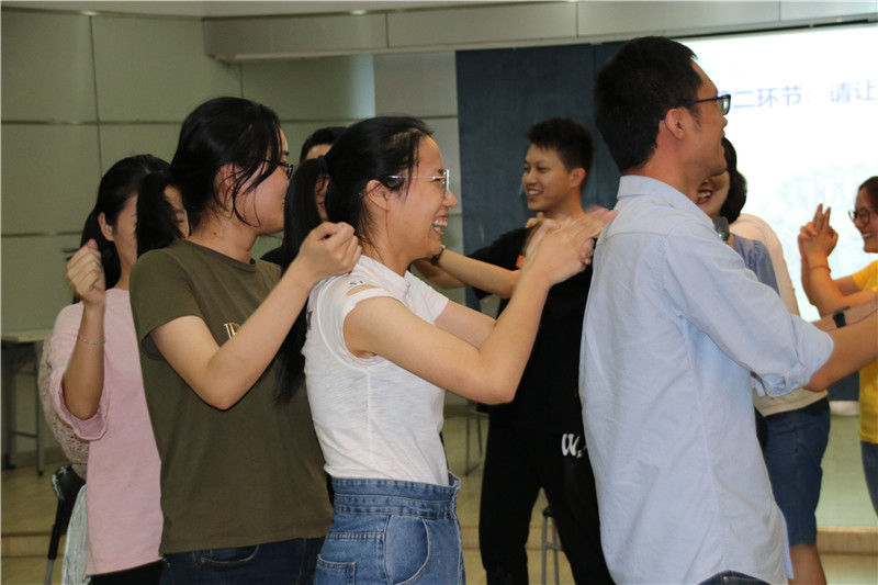 活動在勵志歌曲“追夢赤子心”的音樂聲中拉開序幕。大家在指導(dǎo)老師的引領(lǐng)下,分成二個小組共同進入“大風吹”“請讓我為你按摩一下下”“優(yōu)點轟炸”“銜紙杯傳水”