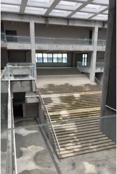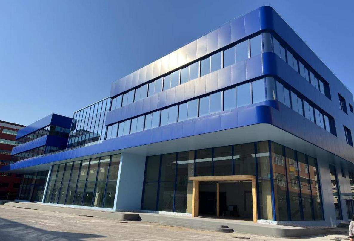 建筑美學(xué):建筑內(nèi)部空間流動(dòng)活潑,以多維度的層次感與流動(dòng)性喚醒豐富的空間體驗(yàn);建筑外立面采用橫向條形玻璃窗與啞光藍(lán)色鋁板交替構(gòu)成,形成簡(jiǎn)潔的現(xiàn)代韻律。同時(shí)中庭的空間構(gòu)架在光影交織中勾勒出虛實(shí)交錯(cuò)的幾何敘事。